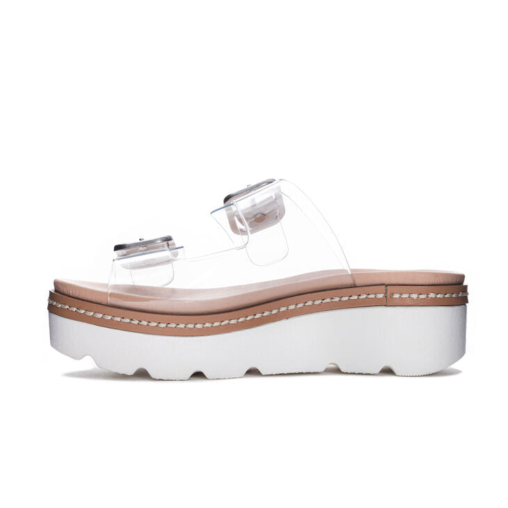 Clear sandal by Chinese Laundry. 2.5" heel, 1.5" platform.